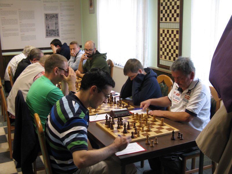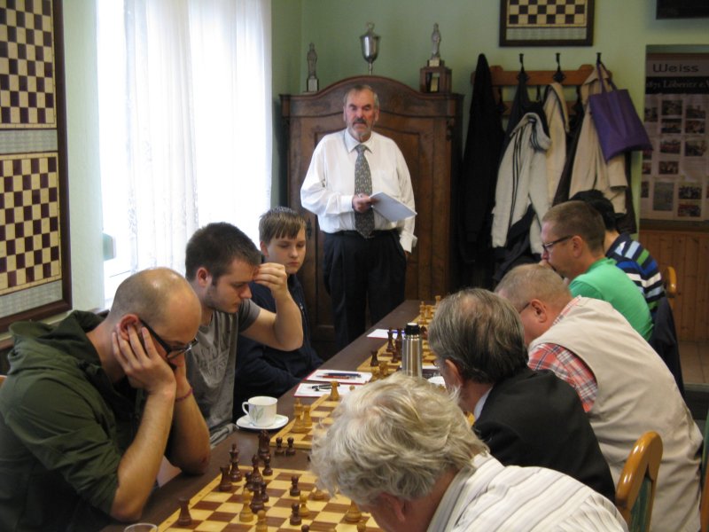 Am Sonntag fand in Löberitz unser erstes Spiel in der neuen Saison der Oberliga Ost gegen den USV Halle statt. Kaum im Schachclub angekommen wurde ich auch schon vom Schiedsrichter an das Schachunwort des Jahres "Artikel 11.3 b)" erinnert. Also noch schnell das im ausgeschalteten Zustand befindliche Handy ganz, ganz weit weggeschafft und der Mannschaft selbiges nahegelegt. Immerhin durfte Christian zu Beginn der Runde noch ein paar Fotos mit seiner Kamera schießen. Unsere Mannschaft schlug in geplanter Aufstellung – ohne Dana und Norman – auf. Bei Halle fehlten Jens Reipsch und Dr. Gerhard Köhler.