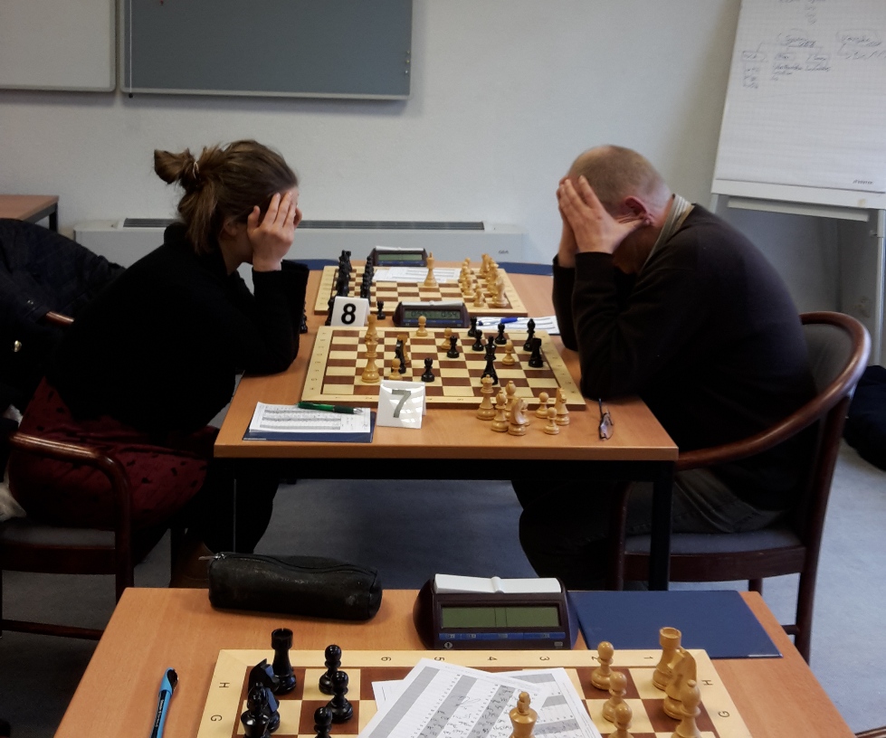 Elina spielte doch nicht mit Inkrement und parkte so in horrender Zeitnot die Qualität weg. Auch Münzi kam nur kurzzeitig in Stellung. Zu allem Überfluss verpasste es Normi seinem prächtig aufgefahrenen Geschwader den Abzug zu drücken und musste sich mit Remis bescheiden, während Reyk den Laden zum gleichen Ergebnis zusammenhielt. Am Ende kämpfte noch Bekka, aber letztlich für die Katz.