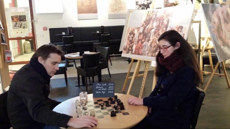 Aber alles von Anfang: Einen Tag zuvor, also am 17. Januar trudelte die Hälfte der Mannschaft (also Münzi, Reyk, Mikly, Patricia und Annika) bei Familie Pallas ein (an dieser Stelle vielen Dank für Speis und Übernachtung!) und spielte noch letzte Vorbereitungen durch, aß zu Abend und fuhr dann am Sonntag Vormittag zum Spiellokal, zu welchem auch die zweite Hälfte der Mannschaft aus Leipzig erschien.