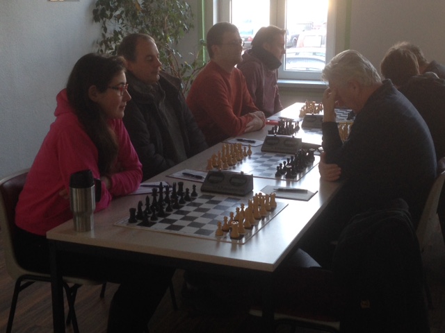 Dieses Pech wurde aber von Nicklas an Brett 8 gegen Andrea Glaser und von Patricia an Brett 5 gegen Arnd Kretzschmar gerächt; Nicklas gewann sehr stark in einer aktiven Stellung und Patricias Eröffnung war bis Zug 14 bekannt und somit kam die gesamte Vorbereitung auf ihr Brett. Im Endspiel konnte sie mit Qualität und besserem Bauernendspiel überzeugen und gewann ebenfalls die Partie.