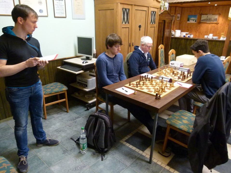 Als letzter spielte nun noch Nicklas gegen seinen nominell 400 Punkte stärkeren Gegner eine sausolide Partie. In einer weitgehend positionell geprägten Italienischpartie wurden die ersten Bauern erst nach der Zeitkontrolle vom Spielfeld entfernt. Mit der Linienöffnung nahm die Partie deutlich an Komplexität zu. Schlussendlich übersah er ein kompliziertes Manöver seines Gegners, der damit die Partie in ein gewonnenes Endspiel abwickeln kann. Sehr schade.