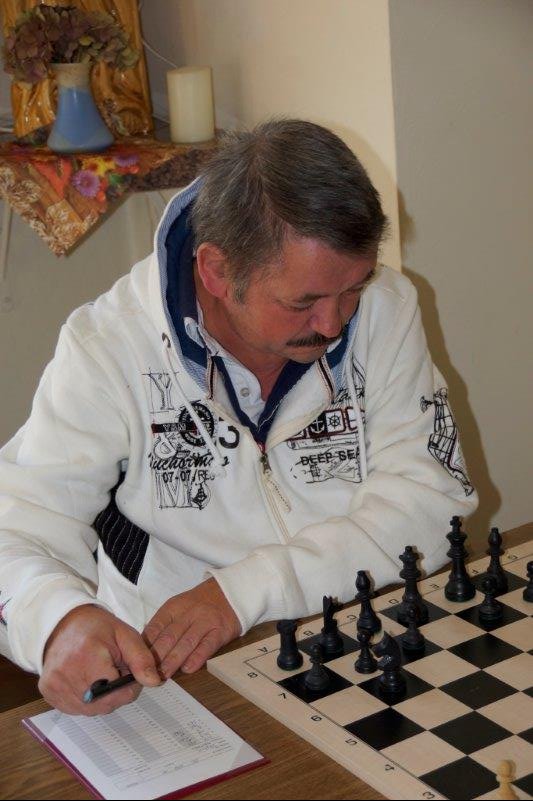 Inzwischen konnte Harald seine stets gewonnene Stellung (nach dem 6. Zug bereits Bauer mehr) verwerten. Der Gegner versuchte zwar noch ein paar Tricks, doch letzten Endes wurde alles von Harald solide abgeblockt und das Turmendspiel mit 2 Freibauern gewonnen.