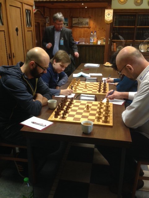 Christian Schindler beendete als nächster seine Partie. Er spielte solide Aljechin und stand (zumindest war mein Eindruck so) die ganze Partie sehr angenehm, konnte aber, da sein Gegner sehr solide spielte, keinen gewinnbringenden Vorteil erzielen und ließ die Partie in ein remises Turmendspiel verflachen, welches bald Remis gegeben wurde.