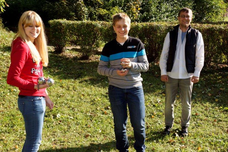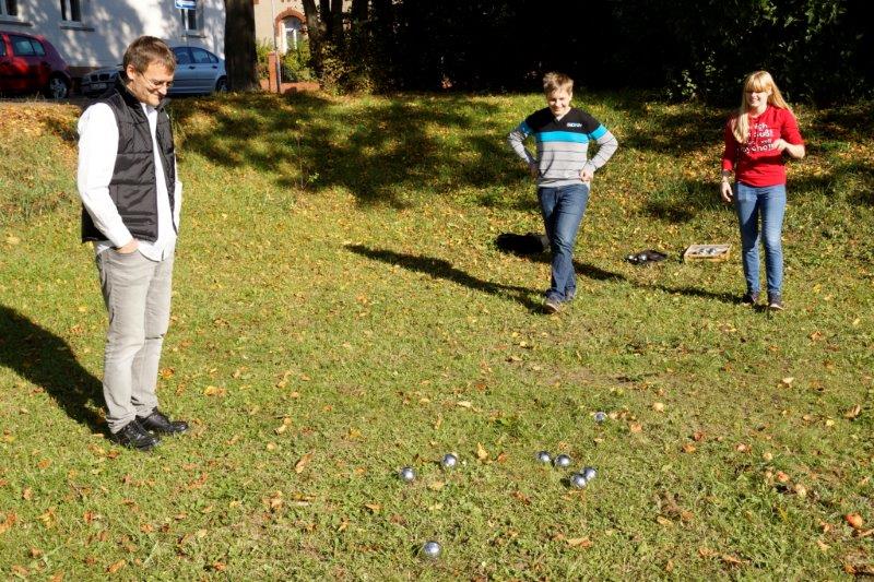 Nachdem die Erste angefangen hatte zu spielen, nutzten Patricia, Reyk, Mikly und der Berichterstatter das schöne warme Wetter zum Boule spielen. Die erste Runde ging klar an Patricia und Mikly, aber dann schlugen Reyk und ich zurück.