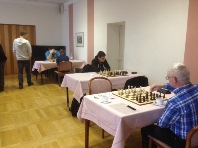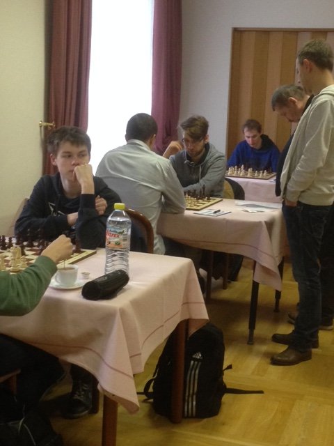 Nach der Fülle an Weiß-Partien zuletzt versuchte ich mich nach 1.e4 und 1.d4 in dieser Saison gegen Philipp erstmals an 1.c4. Im Ergebnis von interessanter Eröffnung und frühem Mittelspiel bekam ich eine schöne Druckstellung mit Läuferpaar. Rechenschwächen in der Zeitnotphase bescherten mir jedoch beim Stand von 3,5:3,5 das wohl objektiv remise, aber unangenehmere Endspiel. Zum Glück driftete dieses ohne weitere Abenteuer gegen 14.30 Uhr in den Remishafen.
