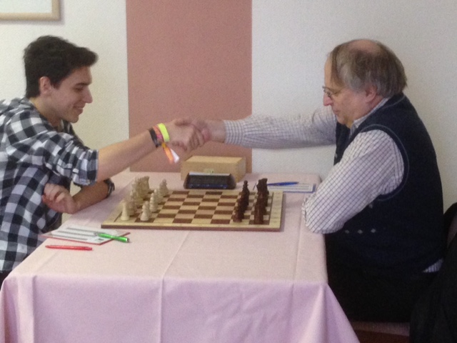 Sebi hatte gegen René nach einem scharfen Grünfeld-Inder in komplexer Stellung die Oberhand gewonnen, aber die Verwertung war nicht einfach. Die Abwicklung ins ungleichfarbige Läuferendspiel war am Ende nicht ganz ausreichend. Aber Remis aus der Position der Stärke mit Schwarz gegen René David ist ein gutes Ergebnis!