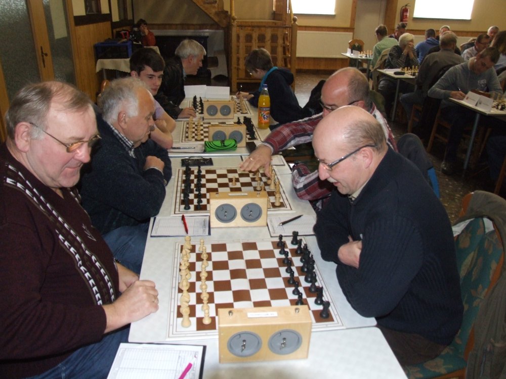 Bei Jürgen spielte sich alles im Zentrum ab und bei gleichbleibender Stellung brannte erst mal nix an. Erstaunlich, dass Otto am 4. Brett sich zum einen Zeit ließ zum anderen keine großen Fehler zuließ, so dass auch diese Stellung ausgeglichen war. Uwes souveräne Spielweise ließ den Gegner kein Durchkommen und somit war nach 1 Stunde Spielzeit alles safe. Mein Gegner wusste wohl kein richtiges Rezept gegen meine gefestigte Stellung und bot mir ein Remis an, was ich natürlich annahm, da der halbe Punkt uns als Mannschaft ja reichte.