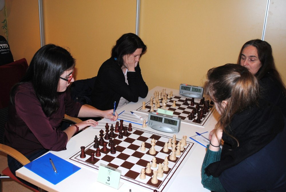 Dana und Anita beherrschten an den Spitzenbrettern ihre Gegnerinnen klar, Elina remisierte nach furiosem Start etwas glücklich, Trixi gewann nach einer tollen Leistung gegen die erfahrene Leipziger Mannschaftsführererin Hannelore Neumeyer, Christine hatte den Sieg auf dem Brett, unterschätzte letztendlich einen Freibauern ihrer Gegnerin und kapitulierte. Spätestens beim nächsten Spiel wird es dann klappen.