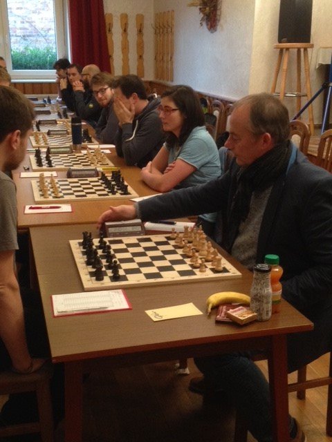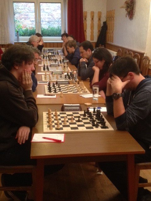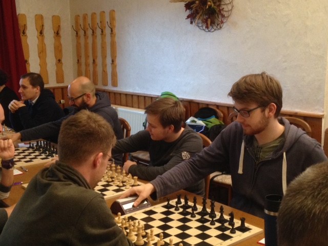Das Spiellokal war schön geräumig, wenn auch etwas dunkel geraten, was uns durch den Einsatz zusätzlicher Lichtquellen aber nicht vom Schachspielen abhielt. Mit Daniel Wanzek hatten wir auch einen sehr sympathischen und kompetenten Schiedsrichter an unserer Seite, sodass eigentlich nichts mehr schief gehen konnte.