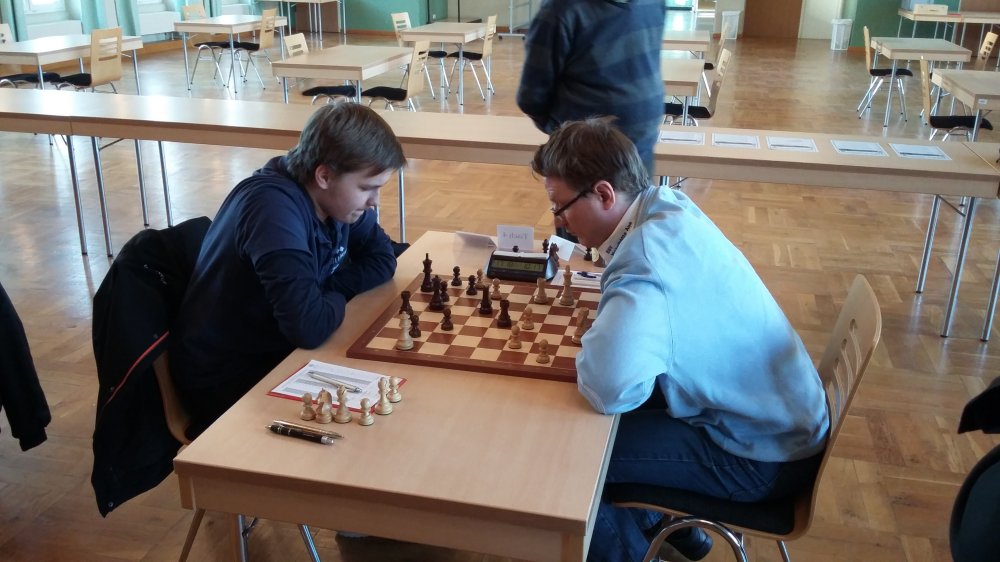 Holly erreichte zwar einiges, aber ein Gewinn war nicht greifbar. So ruhten alle Hoffnungen auf Christians Verteidigungskünsten, die er die gesamte Partie über schon zeigte. Im Mittelspiel schwer unter Druck, entkam er geschickt in ein Dame-Springer-Endspiel mit Minusbauer, aber allen auf einem Flügel. Als dann noch die Springer trotz Verschlechterung der Struktur getauscht wurden, waren die Hoffnung aufs Remis groß. Doch das eigentlich logisch aussehende h4 hinterließ eine zweite Schwäche, die im Endeffekt mit e6 einen zweiten Bauern und die Partie kostete.