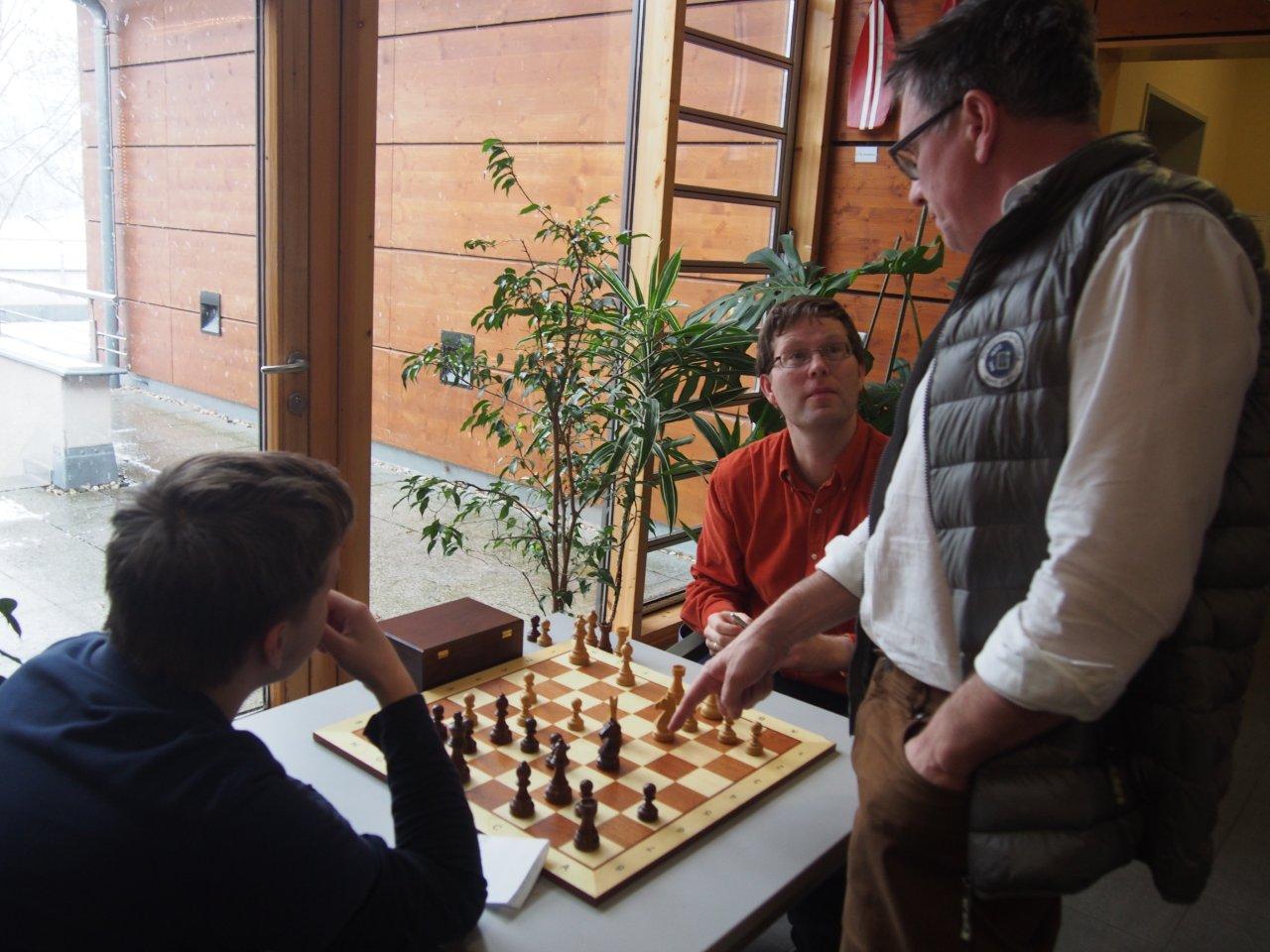 Auch Christian stand, so wie ich es sah, die ganze Partie lang etwas unbequem. In Zeitnot verlor er einen wichtigen Bauern und dann die Partie.