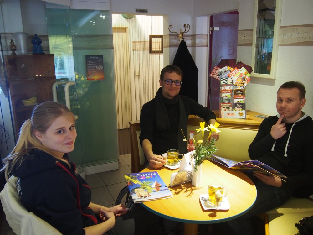 Nach einem kurzen Zwischenstopp in einem Eiscafe, in dem selbst zum Tee ein kleines Eis gereicht wurde und die Speisekarte u.a. auch Steak, Nudel mit Tomatensauce sowie andere warme Speisen bereit hielt (allerdings nur bis 14.30, so dass Reyk nicht wie geplant zuschlagen konnte), ging es weiter ins Spielehaus. Für mich sprangen noch schnell 1,2 neue Spiele heraus, bevor ich mich zeitnah auf den Rückweg gen Zörbig machte. Wie der Abend weiterging müssen andere berichten.