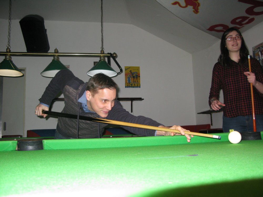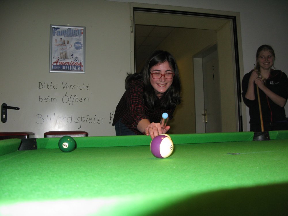 Doch bevor es am Sonntag losgehen sollte, beschäftigten wir uns in verschiedenster Zusammensetzung am Samstag zunächst mit großen (Bowling) und kleinen (Billard) Kugeln in Halle. Beim Bowling hatte Elina den besten Wurf gefolgt von Robert, Brain und Sebi, die am Ende nur jeweils einen Pin auseinander lagen.