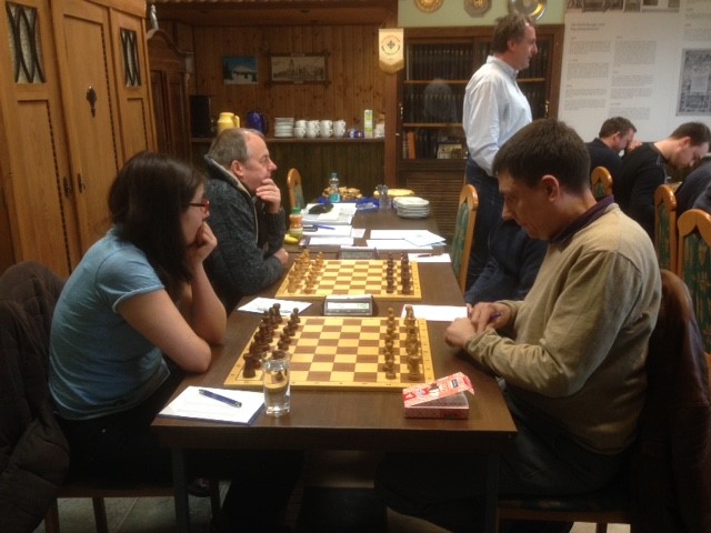 Zwei Stunden wogte der Kampf ohne besondere Vorkommnisse, mal abgesehen von gelegentlichen Gaumenfreuden, hin und her. In der dritten Stunde aber unterlief Normi am Spitzenbrett ein erstes unfreiwilliges Opfer. Ein weiteres folgen lassend war es auch schon vorbei. Elina zeigte sich solidarisch und verzichtete in ansonsten ordentlicher Stellung ebenfalls auf einen Offizier. Null zwo.