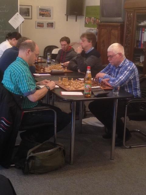 Münzi spielte mit Schwarz gegen Katja Hartung. Seine Gegnerin spielte Lg5 und ihm gelang es, mittels h6 und g5 den Läufer auf g3 einzuschränken. Er installierte einen Springer auf f4 und sammelte den g2 ein. Er überspielte seine Gegnerin, und der zweite volle Punkt war die Folge. Am letzten Brett stand Heiko mit Weiß etwas unter Druck, ihm gelang es jedoch die Balance zu halten und das Remis in der Endstellung war gerechtfertigt.