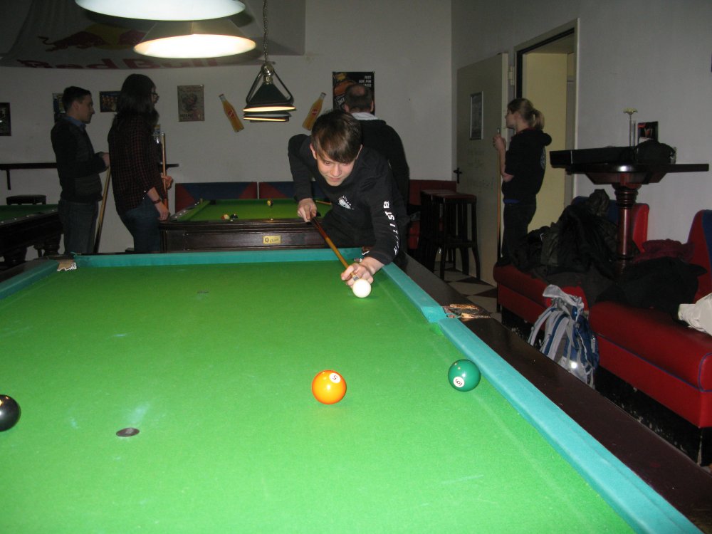 Danach folgten noch ein paar Runden Billard und der Hunger machte sich breit. Während sich Patricia, Holly und Reyk dazu entschieden, in das Eiscafe Softis einzukehren, ließen Sebastian und ich es bei mir zu Hause schmecken. Der Abend wurde durch ein paar Runden "Word Slam" im Spielehaus abgerundet, zu dem noch Frido, Nico und Christian stießen.