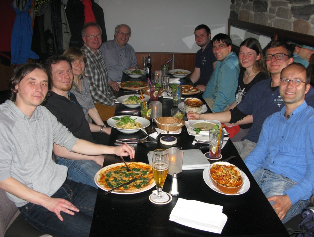 Somit stand eine knappe und vermeidbare 3,5:4,5 Niederlage zu Buche. Der Stimmung schadete dies aber nicht, denn durch die anderen Ergebnisse stand der Klassenerhalt endgültig fest. Dadurch konnten wir den Abend entspannt beim Italiener verbringen, verstärkt durch Nudel, Eileen, Johanna und einen anderen Edelfan aus Dessau. Gelassen, aber mit erheblichen personellen Sorgen sahen wir dem letzten Spiel entgegen.