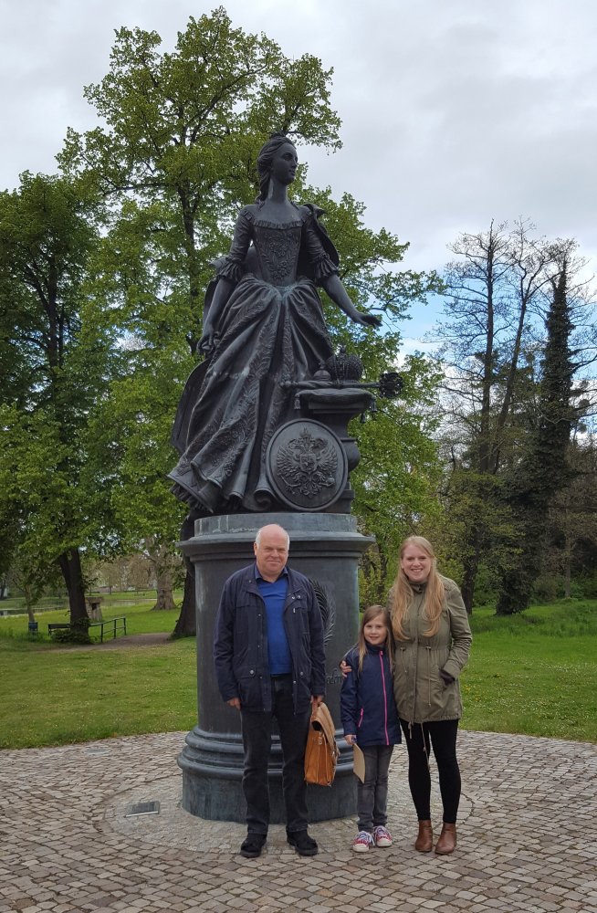 Vor der Reit- oder Stadthalle steht das von dem Moskauer Bildhauer Michail Perejaslawez geschaffene Denkmal der Prinzessin Sophie Auguste Friederike von Anhalt-Zerbst, die von 1742 bis 1744 in Zerbst Jahre ihrer Kindheit verlebte. Bekannter ist sie als Katharina II. von Russland. Als Repräsentantin des aufgeklärten Absolutismus gelang es ihr mit deutscher Gründlichkeit das russische Riesenreich mit einer effizienten Verwaltung zu versehen. Als einzige Herrscherin mit Weltrang erhielt sie den Beinamen „die Große“. Soweit zur Historie des Spielortes.