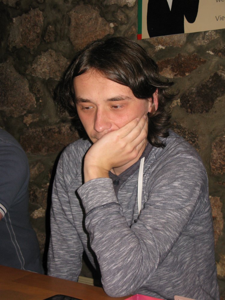 Bei Normi war nach einem königsindischem Angriff ein nahezu ausgeglichenes Endspiel entstanden. Unser Kapitän hatte zwar leichten optischen Vorteil, ein Durchbruch war aber nicht in Sicht. Durch bloßes Stillhalten wäre es wahrscheinlich auch remis gewesen, Weiß wollte es aber forcieren und wickelte zielsicher in ein Bauernendspiel ab. Was total verloren für ihn war. Kneten wird manchmal eben doch belohnt.