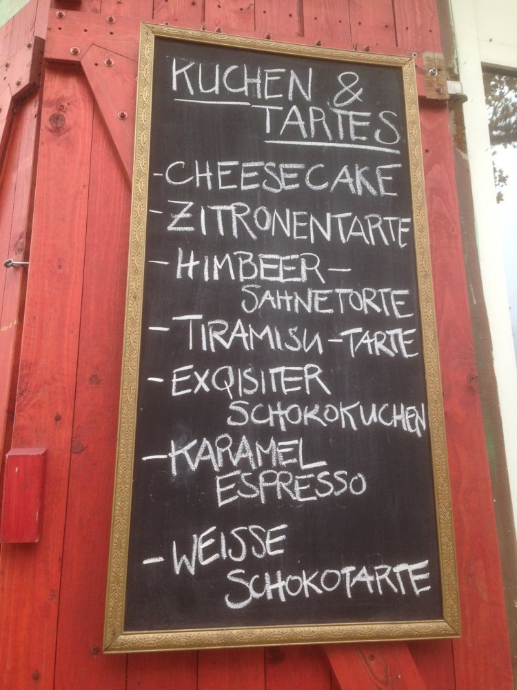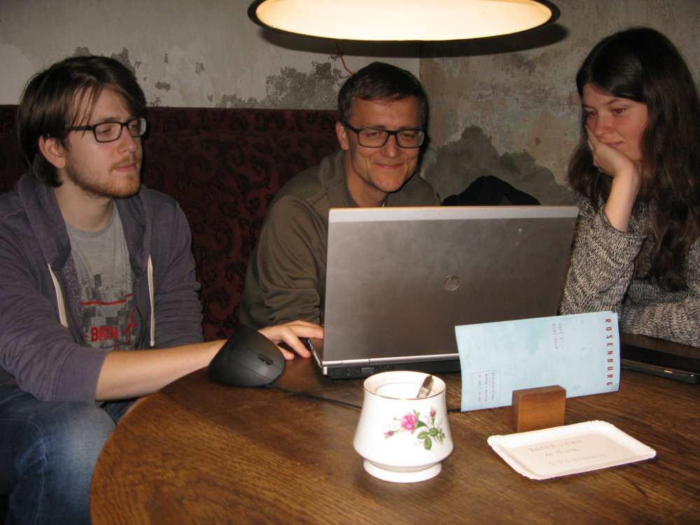 Wir trafen uns am Samstagnachmittag in der "Rosenburg", die mit "exquisiter Schokotorte" und anderen Tartes und Kuchen lockt. Zum Kräftetanken vor den geplanten Ballspielen (auch der an diesem Wochenende von Reyk in Sachsen-Anhalts Shopping-Metropole erworbene Basketball sollte ausprobiert werden ...) wurden reihum die verschiedenen Backwerke probiert und einstimmig für sehr gut befunden.