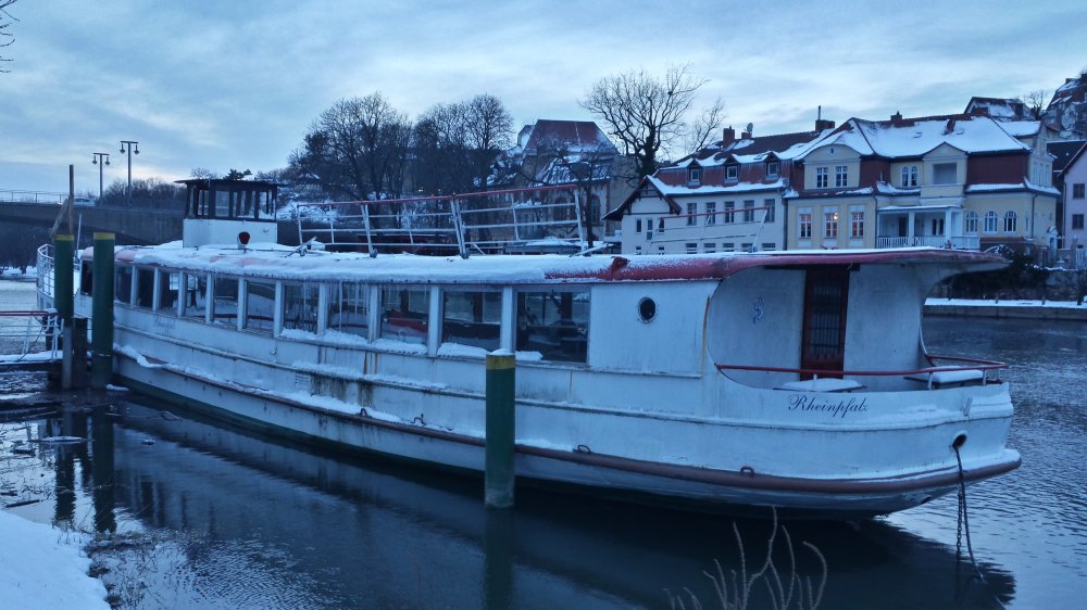 Ich bestelle etwas Warmes, plausche kurz, vereinzelt treffen weitere Gestrandete ein, richte mir das Plätzchen, schaue nochmal aus dem Fenster, wo sich .. der ICE in Fahrt setzt! Ohne zu wissen, wie weit er es noch schaffen wird, später erfahre ich, dass nicht nur der Leipziger, sondern auch der Hallesche Bahnhof erhebliche Probleme hatte, kommt dieser Aufbruch jetzt doch überraschend. Kaum haben sich zwei Berliner zum nächsten Rückzug verabschiedet, steht auch schon Chevalier im Rahmen. Ohne weitere Umstände lädt er mich eine Stunde später bei Uwe ab, wo mich kurz darauf meine Gastgeber einsammeln. Um 15.15 Uhr treffe ich am Bestimmungsort ein, zehn Stunden nach Verlassen meiner Wohnung.