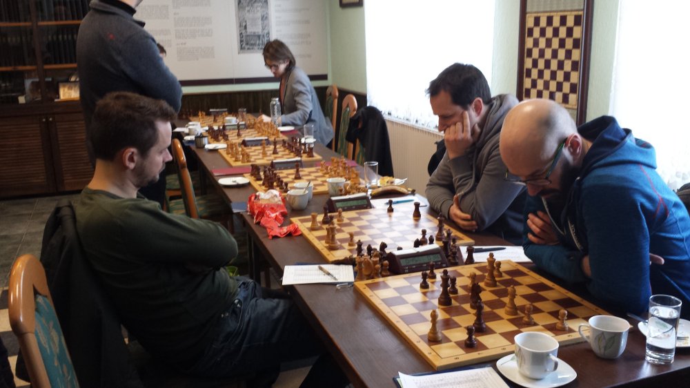 Apropos Schach, wie vor drei Wochen verlor ich selbst, diesmal nach einer abwechslungsreicheren Partie, und damit dann auch die gesamte Mannschaft wieder mit 3,5. Im Oberhaus ging diesmal gar nix, nur Holly holte was Halbes. Mit meiner Ausnahme punktete dafür das Unterhaus voll, darunter sogar Schindli mit Weiß.