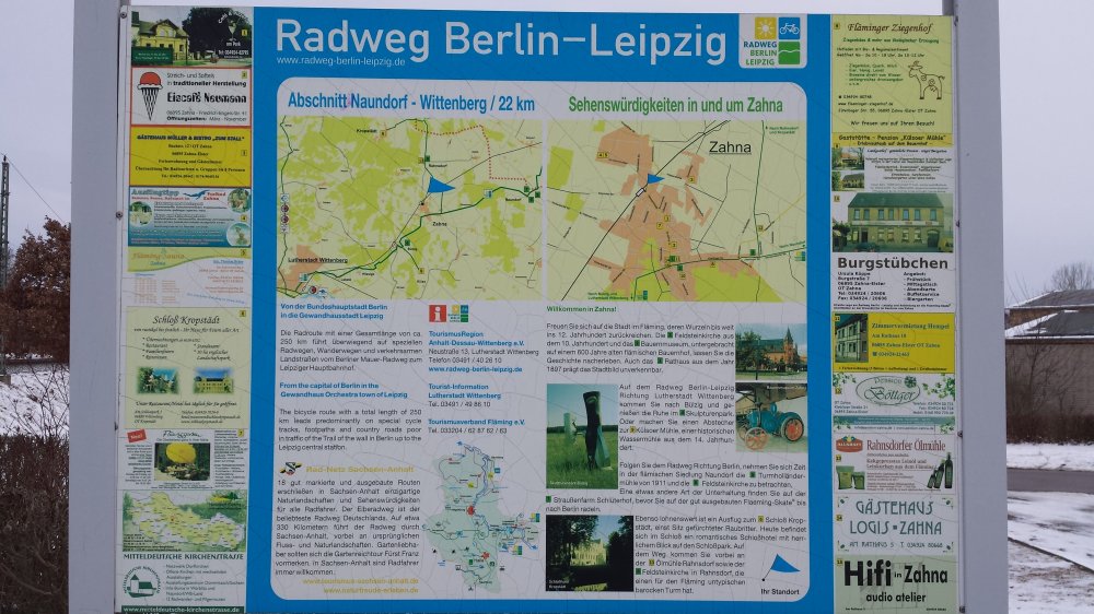 Nach einer Weile halte ich es da nicht mehr aus, gebe meinen Platz gegenüber den Müllbehältern und WCs drein und kämpfe mich durch den Leiberdschungel bis, ja bis ich an die erste geöffnete Tür gelange und dem eisigen Wind ausgesetzt bin. Ich schaue mich um. Bahnbedienstete qualmen sich entspannt ihre persönliche Frischluft, friedlich liegt das Nest um uns herum, welches der gestrandete ICE zu etwa einem Fünftel touchiert. Welches Nest denn eigentlich? Es ist Zahna, genauer: Zahna-Elster. Später erfahre ich von Schiri Gert, dass es dieser Ort aufgrund seines Likörs zu überregionaler Bekanntheit geschafft habe. Dieser könnte hier draußen im kühlen Winde sicher gute Dienste leisten. Es kommen viele weitere Passagiere aus dem Zug und hasten vom Gleis weg. Gar nichts deutet auf eine baldige Weiterfahrt hin. Mir reift die Idee eines Evakuierungsersuchens. Mit dem inzwischen so langsam akkuschwachen Telefon versuche ich es bei Uwe, dann bei Chevalier. Der klärt noch kurz etwas ab und meldet sich binnen Minuten zum Einsatz; in einer Stunde wäre er da. Puh ..