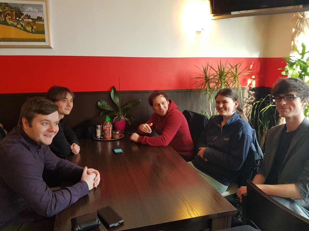 Frido hatte bereits die Initiative an sich gerissen, nachdem Karl sich erst Caro-Kann-mäßig aufbaute und dann doch für einen Franzosen mit verschenktem Tempo entschied. Stefan stand einfach solide. Christian setzte im Sizilianer optisch vielversprechend alles auf eine Karte. Bei Reyk, Joey, Johanna und Thomas sieht alles solide aus. Nur ich stehe nach einer schlechten Eröffnungsbehandlung deutlich unter Druck.