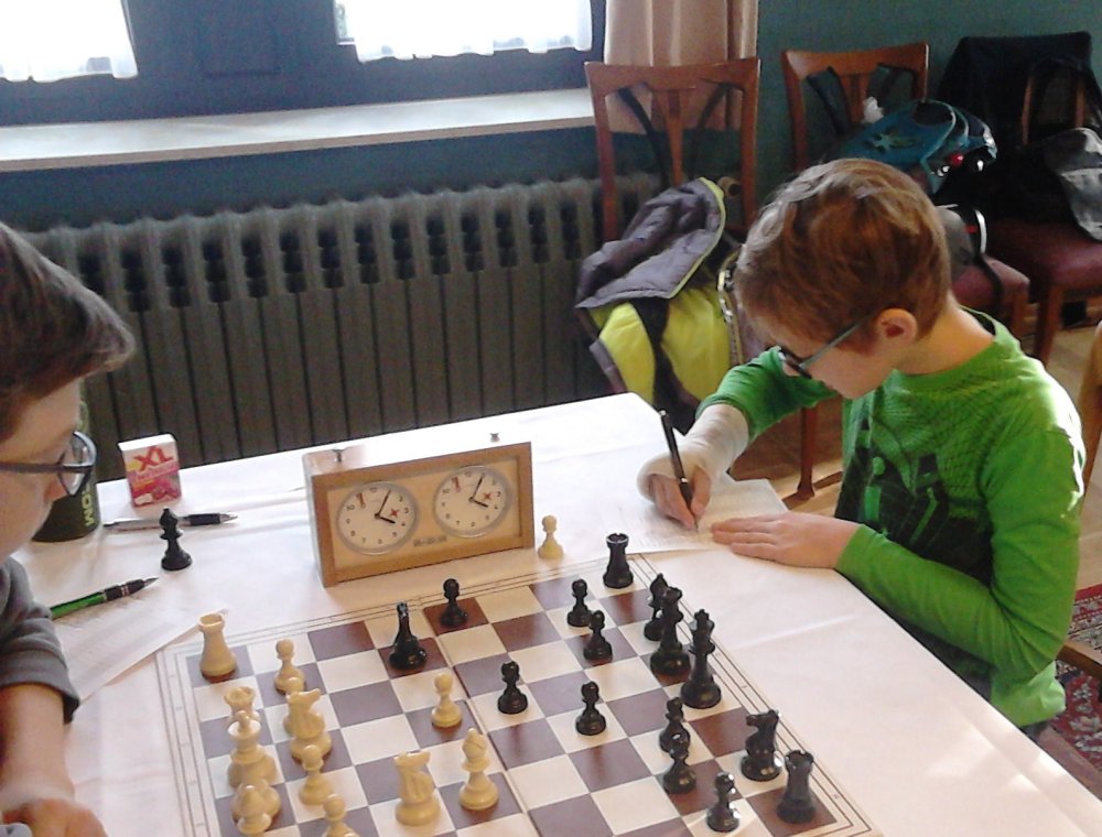 Noch länger spielte Luis Naumann. Fast drei Stunden! Mit zwei Minusbauern und zwei Türmen ging es ins Endspiel. Hier wurde beim Tausch eines Turmes ein Bauer erbeutet. Er und sein Gegner hatten einen Turm und der einzige auf dem Brett verbliebene Bauer konnte locker blockiert werden. Ein vermeidbarer Turmtausch und schlechtes Oppositionsspiel waren dann der Grund für die am Ende vermeidbare Niederlage.