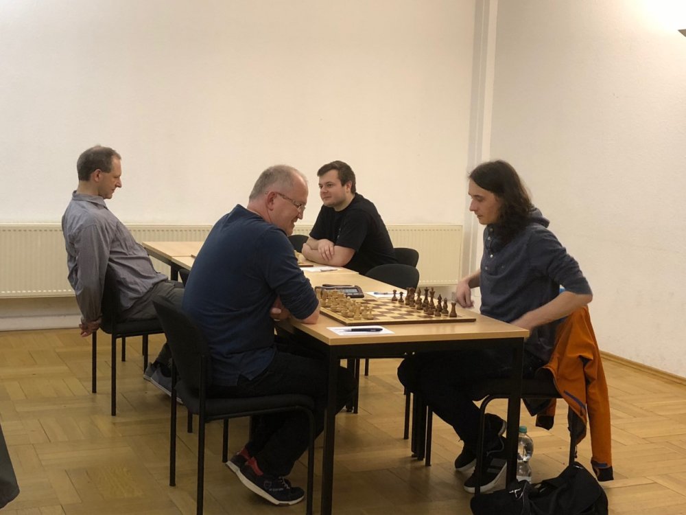 Christian war nun unsere Hoffnung auf zumindest einen Mannschaftspunkt. Nach interessantem Eröffnungsverlauf erhielt Weiß ein gutes Endspiel, das er allerdings völlig verdarb und so Christian eine gewinnbringende Stellung ermöglichte. Allerdings erwies sich die Gewinnführung als sehr anspruchsvoll und so überzog Christian im Wissen der Notwendigkeit des Siegs seine Stellung, wodurch sich die Lage wieder um 180 Grad drehte und Weiß gewinnen konnte.