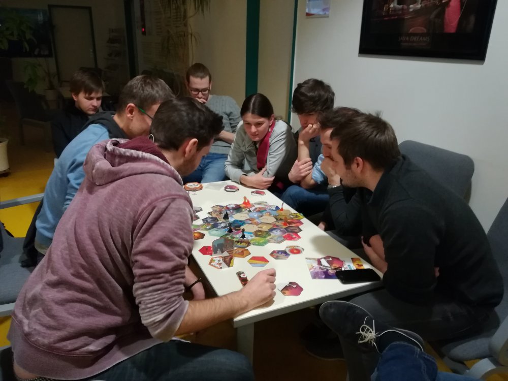 So haben wir uns hart zwei sehr wichtige Mannschaftspunkte verdient, wobei die derzeitige Situation in der Verbandsliga - alle Mannschaften im Abstiegskampf bis auf die zwei Staffelfavoriten - nicht zum Ausruhen auf diesen einlädt. Auch im nächsten Punktspiel muss voll aufgedreht werden. Am längsten spielte, wie angedeutet, Elina, während im Foyer des Spiellokales noch Teile der Mannschaft, flankiert von Normi, Nico und Sebi, des Ergenisses bei Shadows Amsterdam harrten. Der Tag klang dann, für die winterlichen Magdeburg-Punktspiele traditionell, auf dem Weihnachtsmarkt bei Bio-Pizza und veganem Kräcker aus., bevor erster Schneefall die Feiertage einläutete.
