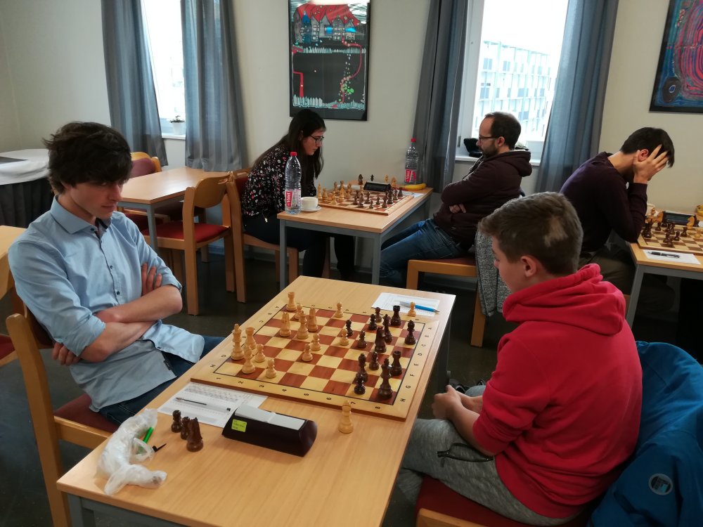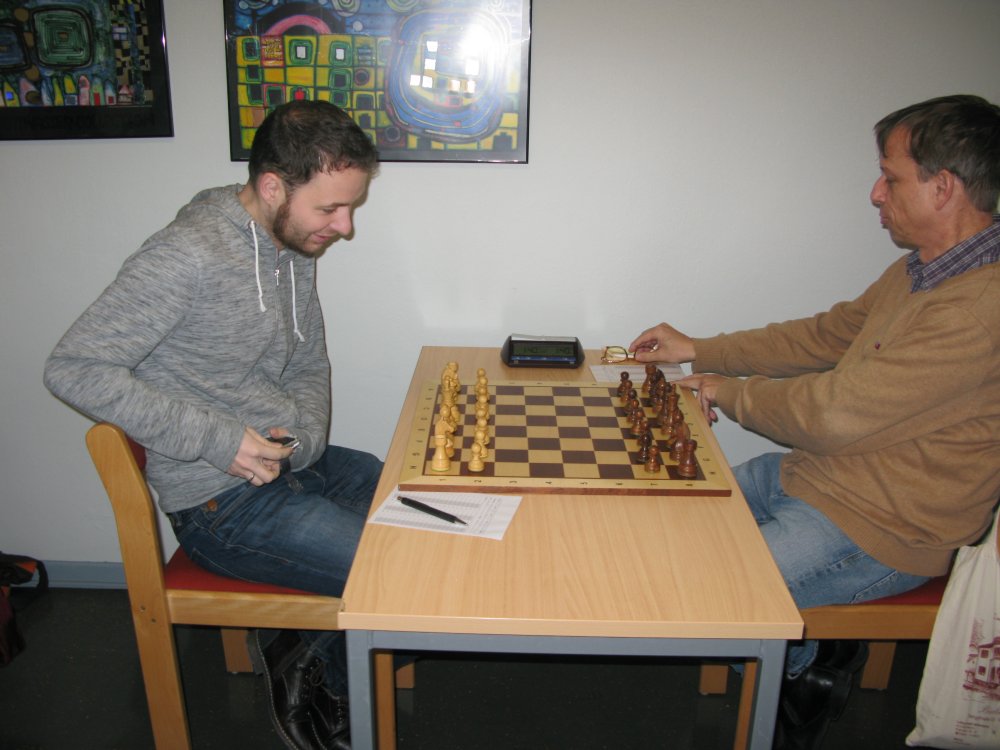 In jedem Fall verirrte sich ein gieriger Reiter nach a7, der nur unter Qualitätsopfer wieder aus der schwarzen Stellung herausfand. Die Sache war fast erledigt und tatsächlich hätte Reyk die Partie mit einer "small combination" direkt beenden können. Stattdessen entstand ein starres Endspiel, bei dem Schwarz nicht zwingend siegen konnte. Beim Zwischenstand von 4-2 bot Reyk dann "netterweise" Remis, was wider Erwarten ob des Zwischenstandes, prompt angenommen wurde.