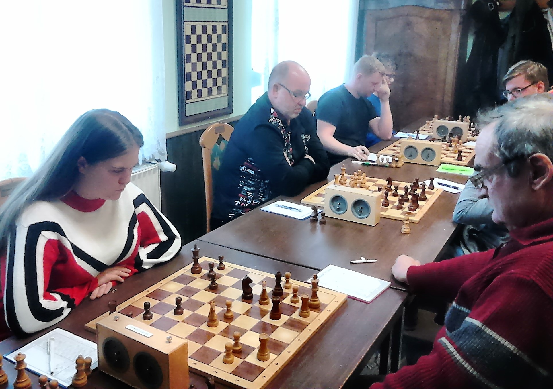 Viktoria Reiß am Spitzenbrett hatte die Partie von Anfang an im Griff, Jürgen Kunze entwickelte wie in alten Zeiten Pläne, die er auch umsetzte, und von Stefan Grube erwartet man inzwischen schon fast einen Sieg. Nur der Triumphator der letzten Runde am Spitzenbrett, Otto Hähndel, fiel in sein altes Manko zurück und ließ, große Kombinationen im Kopf, einfach einen Offizier stehen. Aber was soll's, beim nächsten Mal wird es auch bei ihm wieder klappen.