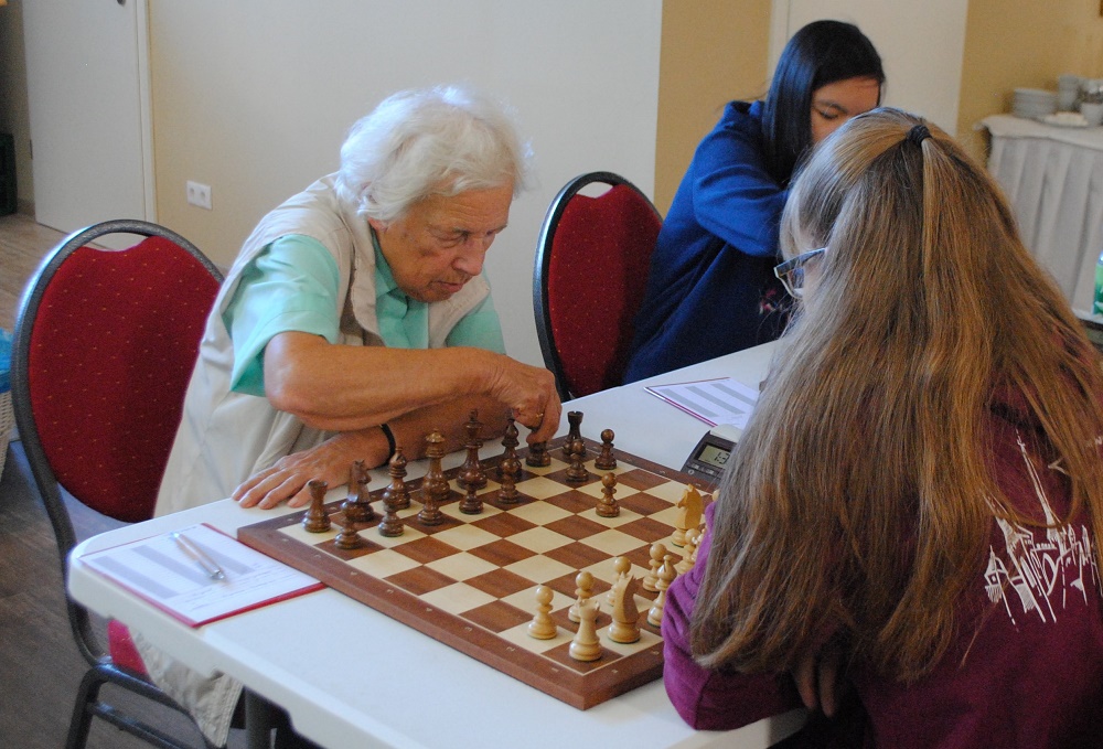 Dieses stand allerdings bis zur letzten Runde auf Messers Schneide. Josephine Kötteritzsch hatte zwischenzeitlich nach ordentlichem Kampf gegen die große alte Dame Dr. Gabriele Just verloren. Es ist erstaunlich, wie sich die 1936 geborene dreimalige DDR-Meisterin und zweifache Deutsche Seniorenmeisterin sowie ehemalige Bronzemedaillengewinnerin der Schacholympiade 1966 in Oberhausen noch gegen die Schachjugend durchsetzen kann.