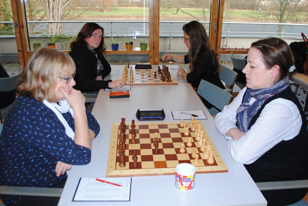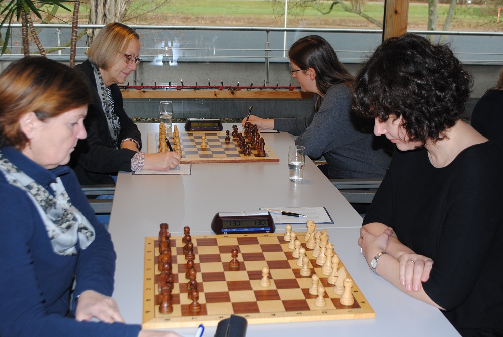WGM Ilze Berzina remisierte gegen WIM Brigitte Burchardt, während WFM Elina Otikova unser Ehrenmitglied WIM Constanze Jahn mit Qualitätsvorteil, aber in einer schwer zu gewinnenden Stellung - im wahrsten Sinne des Wortes - niederkämpfte.