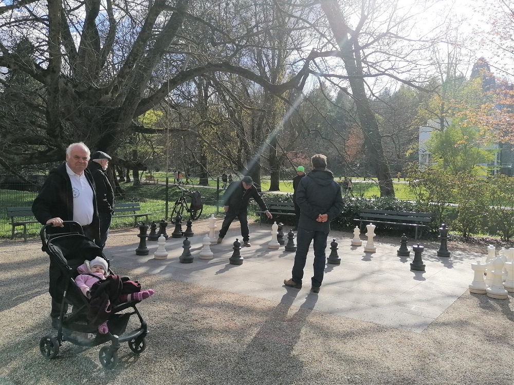 Am frühen Samstagmorgen ging es weiter Richtung Baden-Baden. Nicht aber ohne vorher unser Ehrenmitglied Großmeister Dr. Robert Hübner zu besuchen. Es war mein fünfter Besuch. Ein Wasser gab es während des Gesprächs und einige Bücher für das Schachmuseum.