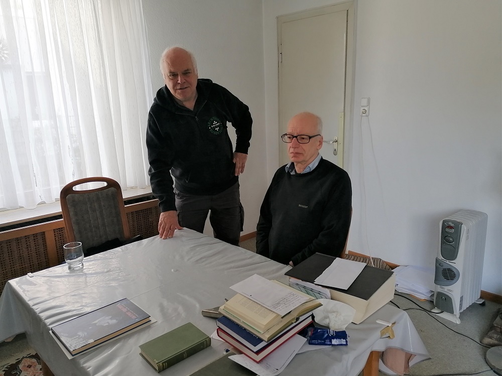 Wenn man sich auf eine so weite Reise durch Deutschland begibt, versucht man so viel wie möglich abzuarbeiten oder Kontakte zu pflegen. So handhabten es jedenfalls Konrad Reiß und Thomas Richter, gen. Chevaliere. Erste Station wurde in Kassel bei dem bekannten und renommierten Schachbuch-sammler Siegfried Schönle gemacht. Nach einer ergiebigen Brotzeit vor einer gewaltigen und beeindruckenden Buchkulisse und einigen neuen Büchern für das Schach-museum im Gepäck ging es weiter.