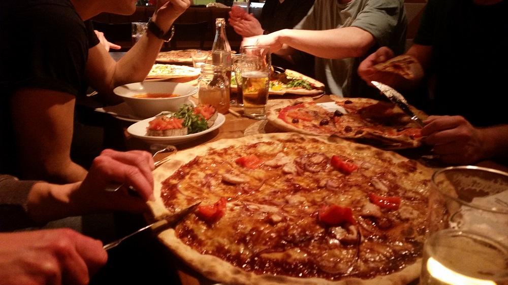 Ab Freitag Mittag begann die Sternfahrt der DB aus verschiedensten Ecken Deutschlands. Robert schlug dabei mit dem Münchner Haken allen ein Schnippchen. Abends vereint beim 45cm-Pizza-Wettessen in L'Osteria.