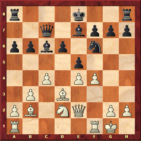 Hugos klare Antwort war "Nein!" mit dem coolen 17...Dd6. Die Kiebitze wollten unterdessen mit 17...Sb5 18.Dc1 S:d3 fremde Figuren opfern. Nicht weniger abgefahren ist die Computeridee 17...Sf7 18.e3 e5! Schwarz wird die Figur bald mit Ausgleich zurück gewinnen. Letztlich nehmen sich alle drei Optionen in der Rechnerbewertung nicht viel. Leider verlor Hugo in Zeitnot Faden und Partie.