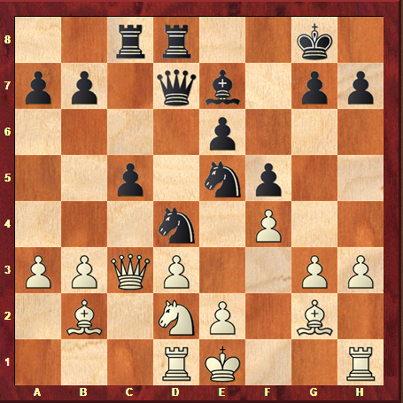 Normi als Weißer ahnte im Anschluss schon, dass er im linken Diagramm mit 14.c5! statt 14.Tae1 eine gute Möglichkeit verpasst hatte. Nach z. B. 14...b;c kann man auf e5 zwischentauschen und anschließend mit L:a6 komfortablen Positionsvorteil eintüten. Stattdessen ein Schwerfigurenendspiel mit nur symbolischem Vorteil: Remis.