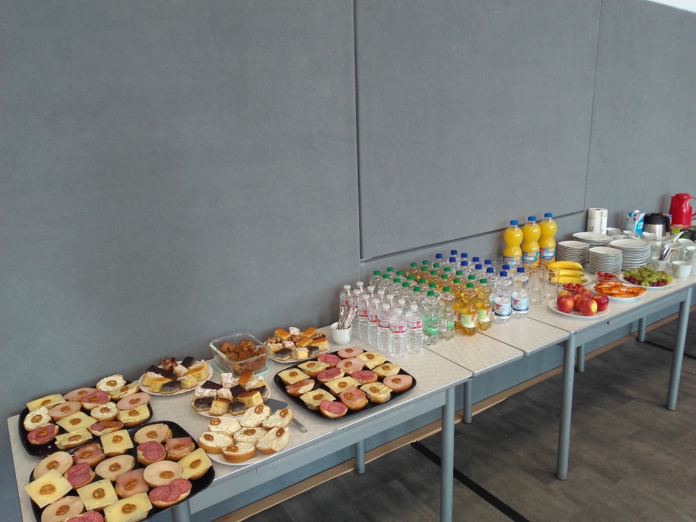 In Löberitz angekommen staunte ich jedenfalls Bauklötzer: Eigentlich war alles vorbereitet: Brötchen, Getränke, Tische, Stühle, Bretter... alles gemacht. Im Nachhinein wurde mir erst einmal zugetragen, dass wir die Halle extra auslegen mussten, um das Parkett darunter zu schonen. Also Vorbereitung und Organisation war top - ein ganz lieben Dank an alle unseren unermüdlichen Helfer: Annette, Andreas, Chevalier, Klaus-Dieter, Konrad, Peter und Yvonne! Da war mein bisschen Brötchen schmieren, später abwaschen und Gebäck mitbringen nur ein Bruchteil von dem, was die anderen geleistet haben. Aber schön, wenn die Nuss-Bananen-Feigen-Rock Cookies so gut weggingen :)