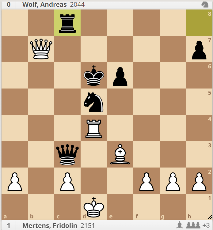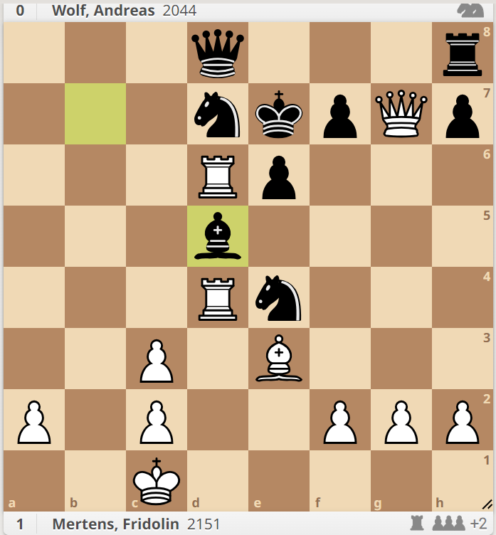 Mertens - Wolf nach 19... Ld5: Weiß gewinnt | Mertens - Wolf nach 27... Tc8: Weiß gewinnt |