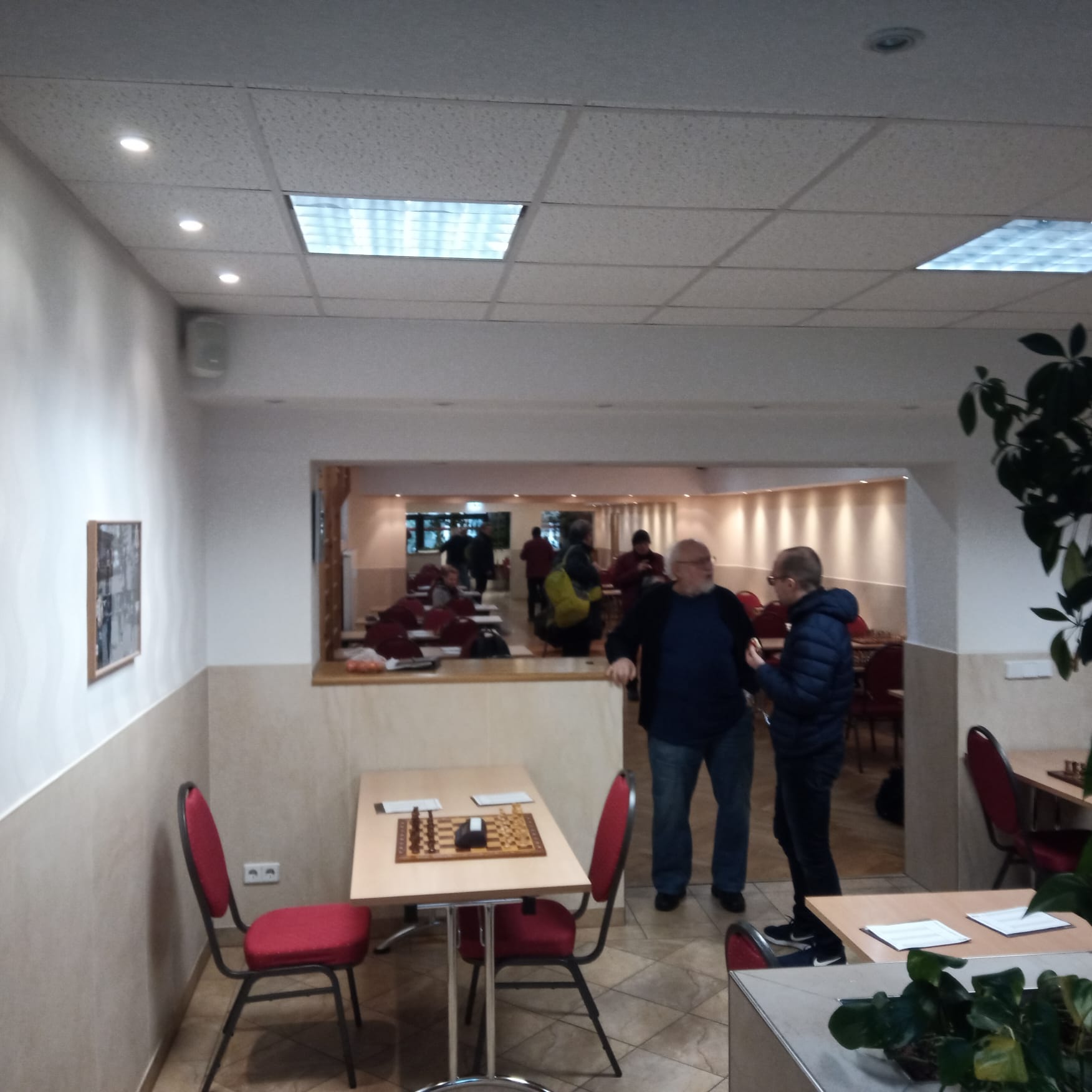 Am Ende kämpfte noch Normi gegen Daniel Zähringer am Spitzenbrett. Man wandelte auf scharfen Pfaden von Caruana - Duda. Russisch mit heterogenen Rochaden. Nach Lb7 hat unser Mann De2 vergessen und ging mit Sh4 c4, g5 eigene Wege. Das Endspiel brachte symbolischen Vorteil, aber nicht mehr und da sich Zähringer zäh verteidigte ... Remis. An Brett 1 und im Mannschaftskampf.