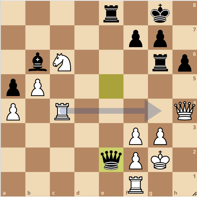 Nach Nicos 30...De2 (Diagramm 1) tauchte erstmals die Drohung ...T:g3+ auf, der am besten mit 31.Tg4 zu begegnen war. Stattdessen 31.Te4 T:e4 nahm das Motiv nicht aus der Stellung. Die Pointe ist, dass nun nach 32.f;e?? Tf6! der f2 durchhängt. Klassisch Tarrasch! Also 32.D:e4 T:g3! Doch nach dem ersten Punischen Krieg war Karthago noch mächtig und die Stellung remis.