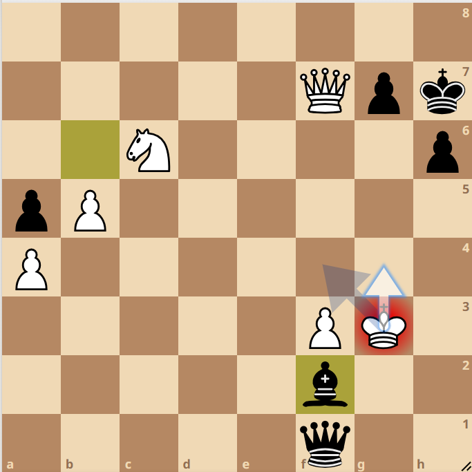 In Diagramm 3 muss Weiß sicherstellen, dass die Damen nicht getauscht werden. Den Ba4 kann er locker abgeben, da Weiß dann wiederum Dauerschach hat. Nach 36.Kg4?? (statt 36.Kf4=) war Karthago jedoch nicht mehr auffindbar und die Stellung nach Schachgeboten auf g2, g5 sowie e3 verloren.