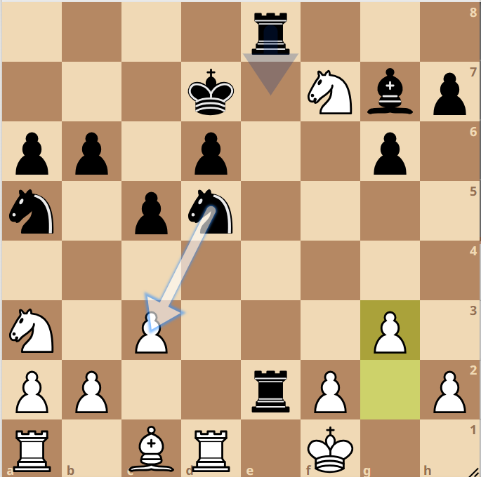 Er hat dann in der Berechnung Le3 mit Bauerngewinn übersehen. Das Endspiel mit Mehrbauer sollte bei genauem Spiel von ihm Remis enden, aber er hat zu passiv gespielt und meinen König nach e4 gelassen, wonach es denke ich verloren ist."
