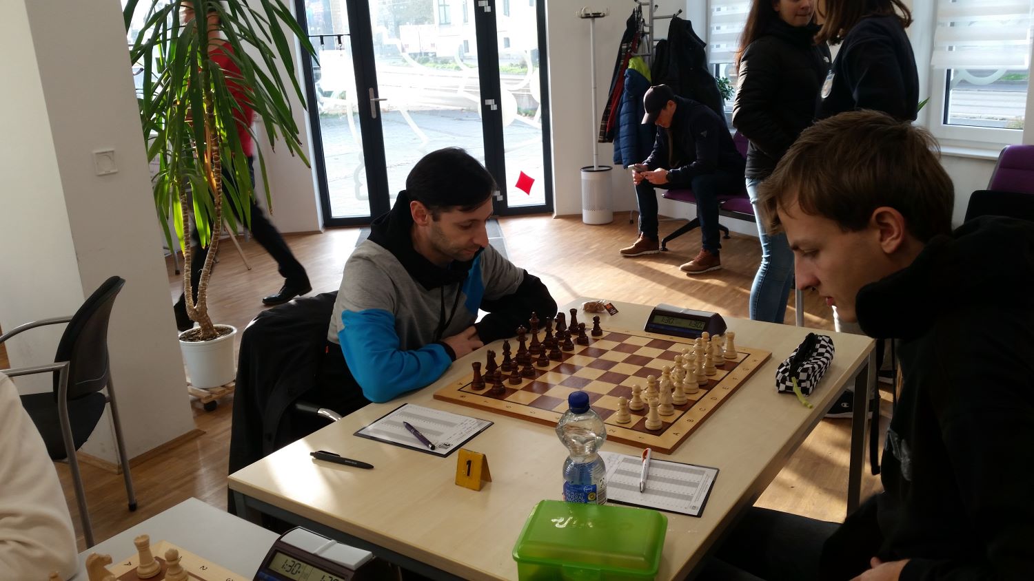 Bei Laura wurde Damengambit diskutiert. Nach etwas Manövrieren konnte Weiß die schwarze Blockade auf e4 auflösen und selbst das Zentrum öffnen, wodurch ein d-Freibauer entstand. Dieser war wohl mehr Stärke als Schwäche und Laura musste einen kritischen Moment überstehen. Weiß ging allerdings an der Gelegenheit vorbei und gab später eine Figur, um seinen Freibauern weiter nach vorne zu bringen. Schwarz erhielt dafür allerdings Gegenspiel in Form von Dauerschach, weswegen auch diese Partie remis endete.