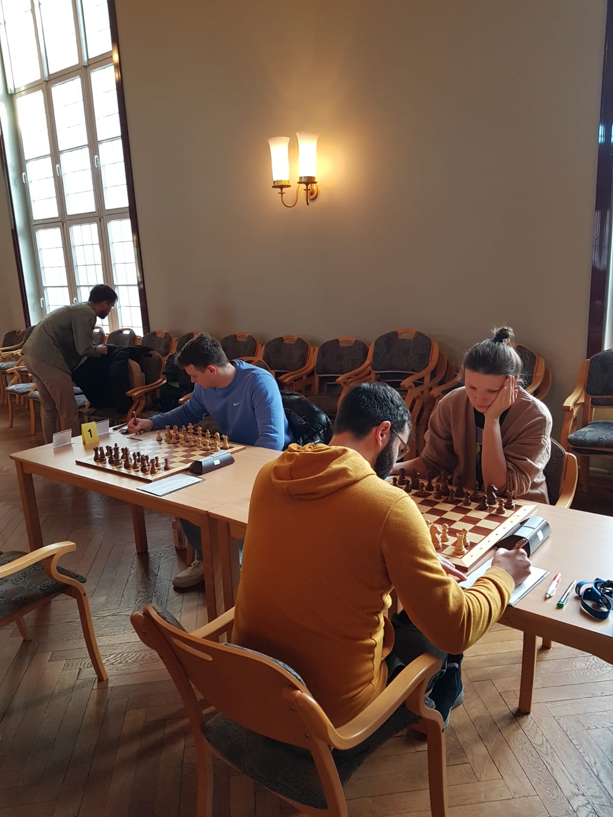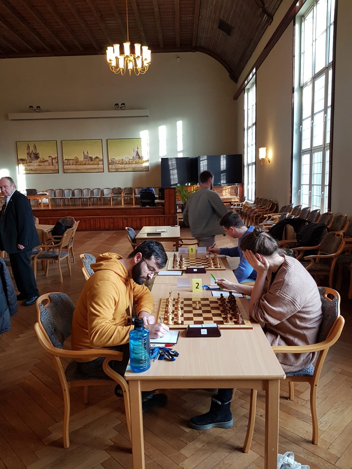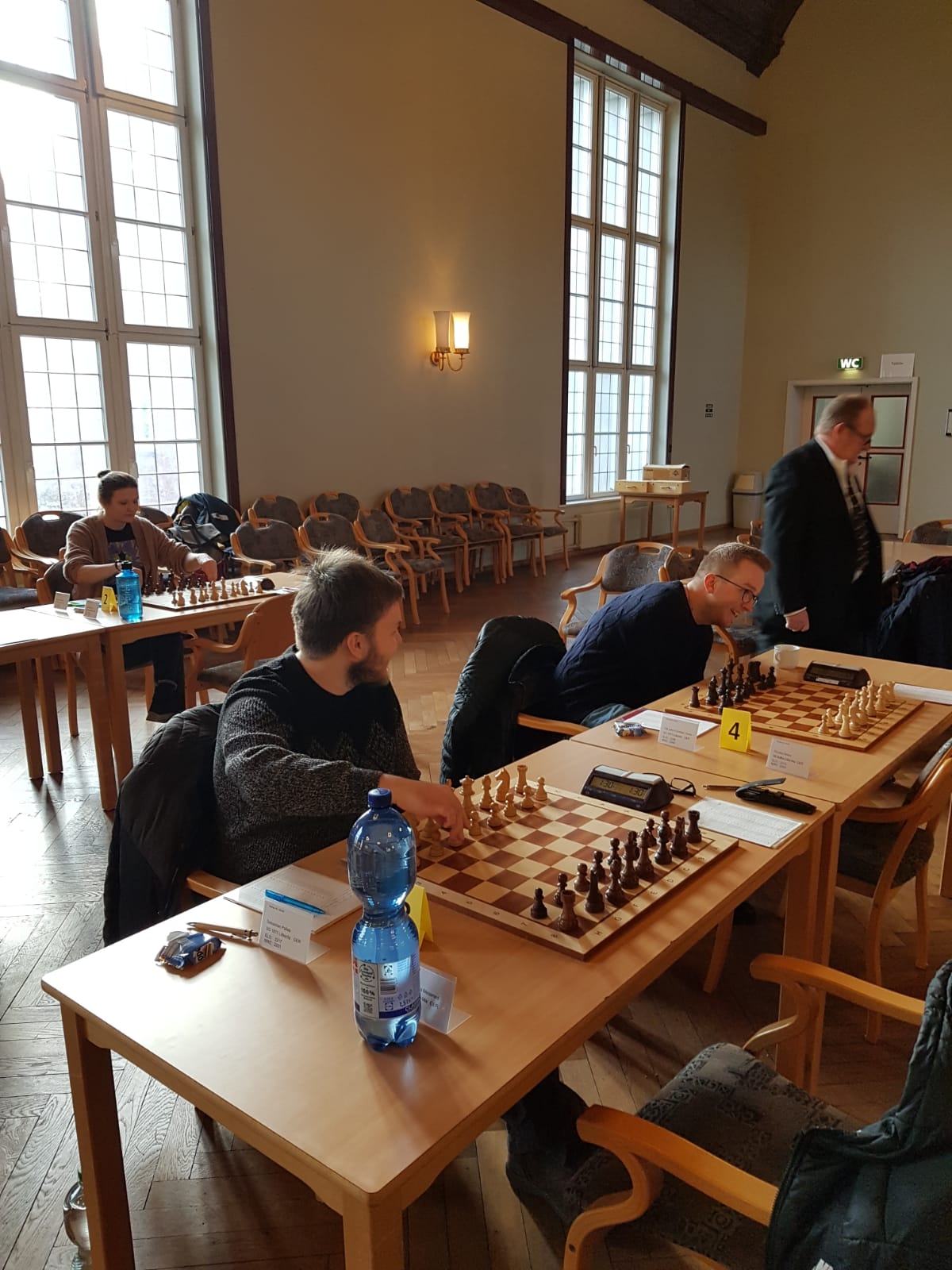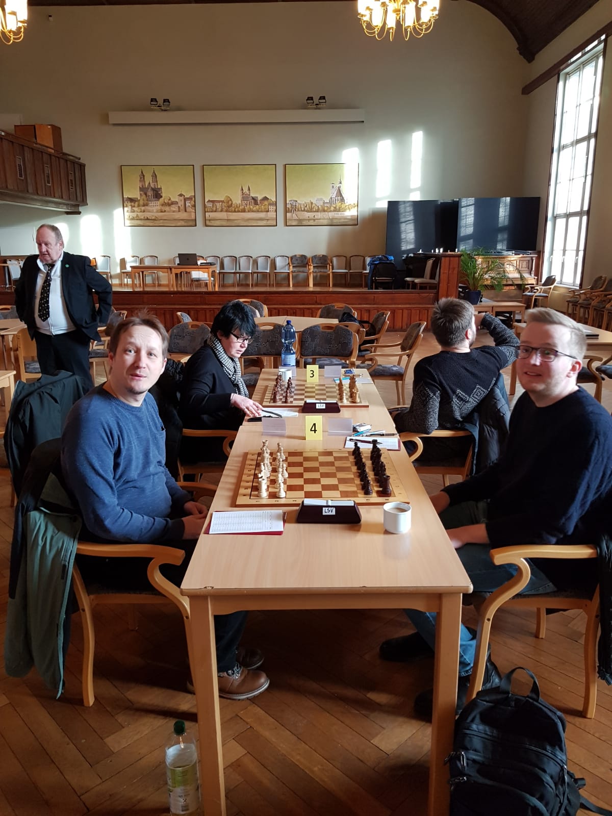 An Brett zwei spielte noch unsere lettische Verstärkung Laura mit Schwarz gegen Johannes Paul. In einem komplizierten Mittelspiel schlug die Frauengroßmeisterin eine Zugwiederholung aus und spielte auf Gewinn. Johannes verteidigte sich stark und erreichte ein Springerendspiel, in dem Laura nicht mehr den richtigen Weg zum Remis fand und der Magdeburger infolgedessen für den Ausgleich und somit den Endstand 4-4 sorgte.