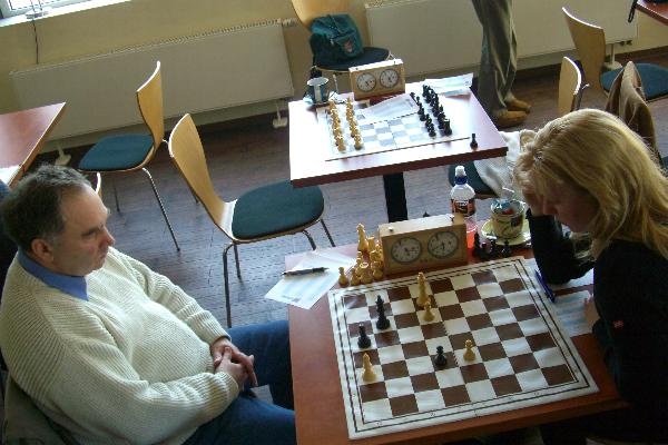 Die Vorentscheidung ist gefallen. Die USV-Reserve wird sich das nicht mehr nehmen lassen (auch wenn Zeitz langsam in Schwung kommt) und entwickelt sich zur Fahrstuhlmannschaft(?). Vom Spitzenspiel konnten wir noch ein paar Bilder einfangen. Das Endspiel zwischen Andrea Glaser und Lew Ptakoul war die letzte laufende und somit entscheidende Partie. Wir erhoffen noch den Bericht eines Beteiligten ...