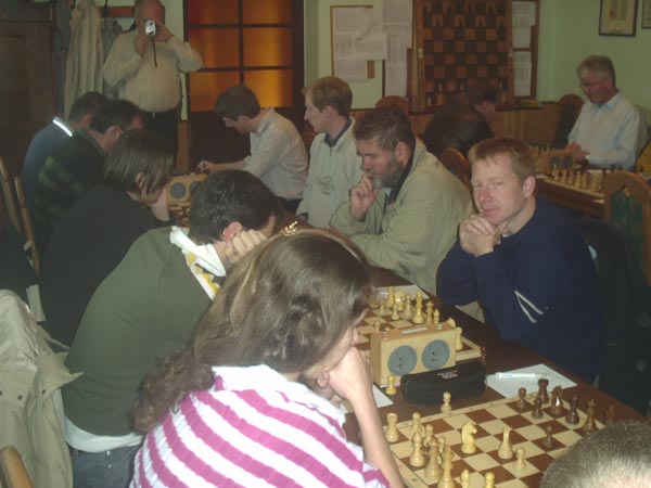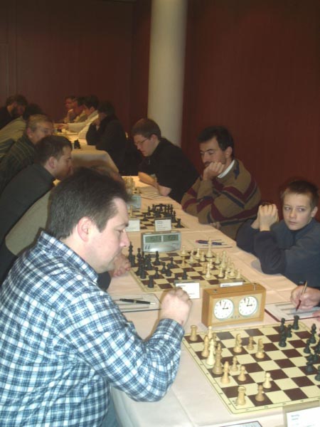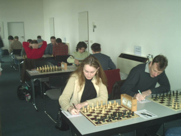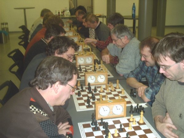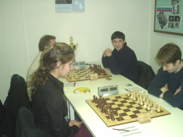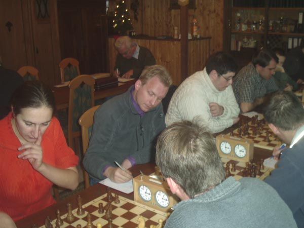 Naumburg konnte einen ganz wichtigen Sieg gegen Chemnitz II landen, aber die Konkurrenz punktete auch. Leer ging neben den Genannten nur Dresden II aus (Zwischenbilanz Dresdner SC: 400 EUR wegen nicht besetzter Bretter). Ansonsten Chemnitz und Leipzig mit den erwähnten Siegen, Coswig und Liebschwitz gar mit je drei Punkten. Wobei einer davon dem in der zweiten Oberliga-Saisonhälfte fast schon üblichen 4:4-Geschiebe entstammt. Nach einer knappen Viertelstunde nahmen Coswig, Liebschwitz und der Schiri den Kampf um die Punkte im Blitzturnier auf. Durch einiges gutes Zureden war man auch gern bereit, den Lärmpegel zugunsten des anderen Kampfes zu senken. Wenn man heutzutage ein solches 4:4 mitnimmt, sollte man darüber übrigens nicht den Mantel des Schweigens legen, sondern stattdessen etwas offensiver von "nicht zu verhindernden Kuriositäten" schreiben.